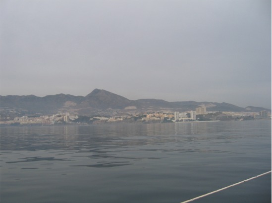 Torstaina 21.10. lähdimme Gibraltarilta itään. Nyt siis matkasimme Välimerellä, joka oli tällä kertaa aivan peilityyni. Joitakin delfiinejä näimme, mutta yhtään ei tullut veneen lähelle; ne vaan menivät omia kulkureittejään, eivät tulleet hyppimään ja leikkimään lähellemme. Päivä oli helteinen ja reilun 20 mailin koneajon jälkeen saavuimme iltapäivällä Esteponaan. Kaupungilla ehdimme hyvin kävellä ja seuraavana aamuna jatkoimme matkaa kohti Benalmadenaa, noin 30 mailin päähän. Edelleen vallitsi täysin tyyni keli ja nyt näkyvyys oli hieman utuinen, välillä jopa huono.