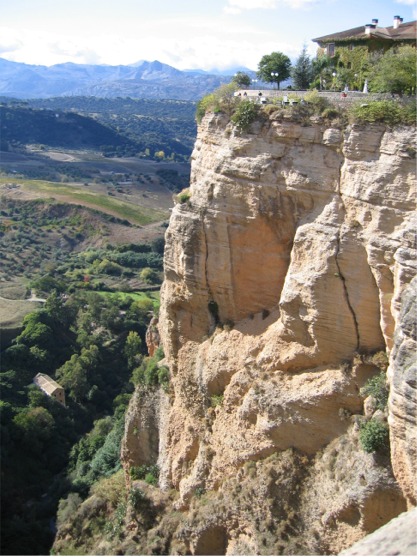 Kuva Rondan kaupunkia jakavan rotkon ylitse menevältä sillaltaLoppuaika meni lähipaikkoja katsellen kävellen, välillä bussilla ja junalla ajellen sekä ostoksia tehden. Rantaelämää emme harrastaneet, mutta toki rannalla kävelimme. Purjehtiminen jäi tällä kertaa, kun tuulet olivat loppuviikosta niin olemattomia. Iltaisin ihastelimme ympäröivien vuorien näkymää; oli veikeän näköistä, kun pimeän tultua kadut näkyivät vuoren rinteellä valonauhoina ja talojen valot tuikkivat siellä täällä. Säät olivat suomalaista kesäsäätä lämpötilan vaihdellessa 19-23 asteen välillä. Katukuvasta erottaa hyvin turistit paikallisista: turistit ovat shortseissa tai muuten kevyesti pukeutuneet ja paikallisväestöstä osa käyttää jo toppatakkia. Sateilta vältyimme viikon aikana lukuun ottamatta paria pientä kuuroa lomaviikon alussa ja lähtöpäivänä. Torstai-iltana 4.11. oli sitten edessä haikea eroaminen, meillä oli ollut todella mukava viikko yhdessä. Parasta oli tietysti nähdä Raila ja Jussi, mutta siinä sivussa saimme monia ihania tuliaisia Suomesta (ruisleipää, salmiakkia, kahvia ja muutaman muunkin kaivatun jutun).