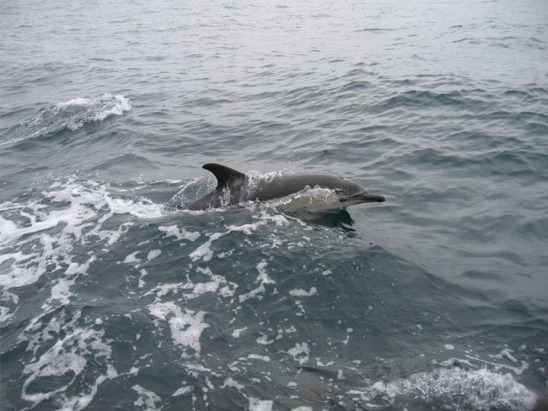 Merelle laskeutui välillä sumu vuorilta ja muutenkin oli hyvin utuinen päivä niin, että maisemia emme juurikaan nähneet. Merellä ei myöskään ollut paljoakaan muuta liikennettä, joten saatoimme keskittyä tähystyksen ohessa lukemiseen. Delfiinien seuraaminen toi myös mukavaa viihdettä matkalle.