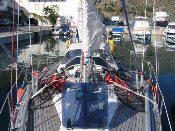rantauduimme Puerto Caleta de Veleziin noin 30 mailin päivämatkan jälkeen. |