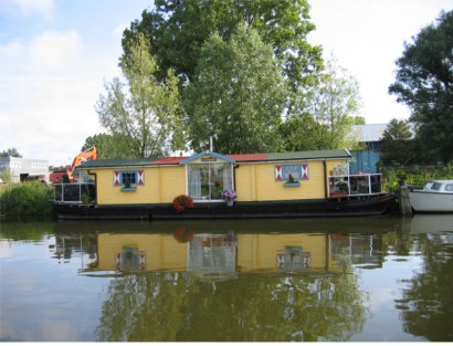 Kanavan varrella oli monenlaisia asuntolaivoja, tässä yksi niistä.Kanaville matkatessa suositellaan lähes välttämättömänä hankittavaksi Almanakin osaa 2, josta selviää mm. siltojen aukioloajat. Koska emme tällä kertaa kulkeneet kanavia tämän pidempää, emme myöskään olleet hankkineet kyseistä kirjaa. Lauantaina selvisimme silloista ihan hyvin, mutta nyt sunnuntaina (18.7.) emme olleet varmoja, mihin aikaan niitä avataan. Ari kävi aamulla kysymässä asiaa naapuriveneeltä, jotka kertoivat, etteivät ne ole sunnuntaina lainkaan auki. Ajattelimme, että oh, hoh, jäimme siis Alkmariin jumiin koko päiväksi. Ihmettelimme aikamme ja tutkimme satamamaksun kerääjältä saamaamme hollannin kielistä esitettä, jonka mukaan sillat pitäisi avautua myös sunnuntaisin. Niinpä päätimme käydä kysymässä vielä toiselta naapuriveneeltä asiaa, kun tuossa ensimmäisessä olivat osanneet englantia vähän heikosti. Tämä toinen veneilijä kertoikin, että esitteen tiedot olimme ymmärtäneet aivan oikein ja sillat avautuvat klo 9-19. Siis matka jatkui ja sillat avautuivat, kunnes vähän ennen Amsterdamia klo 12 yksi rautatiesilta menikin ihan veneen keulan edessä kiinni. Olimme matkan varrella kyselleet siltojen avautumisesta aina tarpeen vaatiessa VHF:n (veneradiopuhelimen) kautta ja niinpä otimme nytkin yhteyttä, mutta kukaan ei vastannutkaan. Aikamme pyörimme sillan edessä, kyselimme VHF:llä saamatta vastausta ja tulimme siihen tulokseen, että nyt on luultavasti siltavahdeilla lounastauko. Niinpä mekin kiinnitimme pariin sillan vierustolppaan veneen ja pidimme lounastauon. Ongelmana oli vaan, ettemme tienneet, miten pitkä kyseinen tauko on vai joudummeko peräti yöpymään kyseisessä paikassa. Tässä vaiheessa tuli mieleen, että kyllä se kyseinen Almanakin osa olisi ollut tarpeen hankkia.