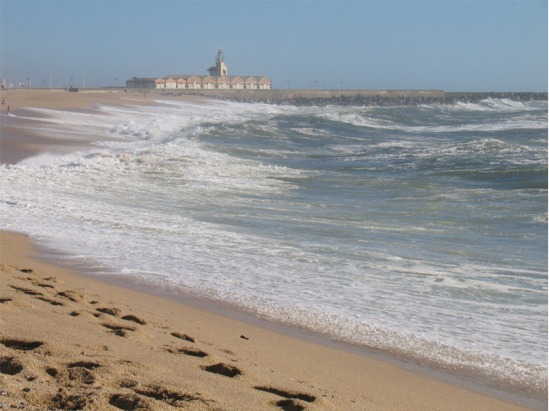 Tiistaina uimarantaan vyöryivät melkoiset mainingit.Siitä, miten aikamme Povoa de Varzimissa käytimme, kerron seuraavaksi. Sunnuntai 12.9. kului, kuten aina uudessa paikassa, paikkoja katsellessa. Yksi päivän kohokohta oli toki myös minun syntymäpäivälounas. Emme me tavallisesti syntymäpäiviä niin juhli, mutta täällä on ihan mukava keksiä jokin syy poiketa normaaleista arkirutiineista (voisi olla hyvä tehdä samoin kotonakin). Tulee mieleeni tässä yhden ARC:ssä (marras-joulukuun vaihteessa noin kolme viikkoa) Atlantin ylitse menossa olevan norjalaisen veneilijän maininta siitä, miten ARC:ssä veneet ovat yhteydessä keskenään päivittäin ja kun merellä ei ole muuten juuri mitään suuria tapahtumia, niin kaikki juhlivat Suomen itsenäisyyspäivää. Kaikki arkirutiineihin poikkeuksia tuovat asiat kannattaa käyttää hyväkseen, ettei monta viikkoa merellä oltaessa pitkästy! Illalla veneemme viereen saapui yksi pariskunta, joilla oli vene samassa satamassa, ja joista rouva on kotoisin Suomesta Lappeenrannasta. Aamulla paikallisten veneiden lähtiessä sunnuntaipurjehdukselle Ari olikin jo ihmetellyt yhden veneen nimeä, kun se oli Näkki II. Pariskunta totesi, että suomalaiset ovat niin harvoin nähtyjä täällä, että juttusille pitää tulla; edellisenä kesänä he olivat tavanneet yhden suomalaisveneen.