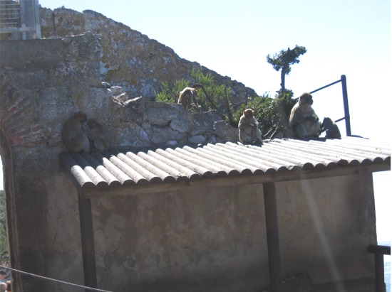 Lauantaina iltapäivällä nousimme kaapelivaunulla ylös Gibraltar Rockille. Lauantaiksi sattui kaunis aurinkoinen sää ja näkymät olivat sieltä upeat joka puolelle, niin Afrikkaan kuin Välimerellekin. Gibraltarin kuuluisia apinoita näkyi lukuisia. Alaspäin kävelimme ja sen tunsinkin seuraavana päivänä jaloissa; ei matkan pituuden takia vaan siksi, että jotenkin jalkoja tuli jännitettyä koko ajan alaspäin tullessa.