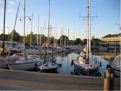 Kalmarin satama tiistai-illan tyvenessä, Suvisussumme taustalla näkyvässä venerivissä |