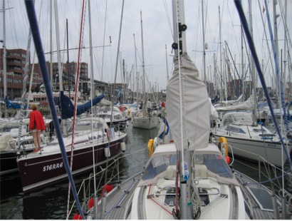 Ruotsista Hollantiin asti elimme ajassa, joka on tunnin Suomen aikaa jäljessä ja nyt täällä aika on kaksi tuntia Suomea jäljessä. Kun täältä menemme Ranskaan eli Manner-Eurooppaan, palaamme jälleen tuohon tunnin aikaeroon, joka on voimassa myös Espanjassa. Vasta Portugalissa elämme jälleen tätä Englannin aikaa eli Greenwichin aikaa (UT-aika, GTM-aika). Näitä eri aikoja olemme saaneet laskeskella, kun tutkimme vuorovesitaulukoita. Välillä katsomme, mihin aikaan on ylävesi Doverissa ja sitten pilottikirjoissa sanotaan, paljonko siihen pitää lisätä (tai vähentää), jotta saadaan kyseisen paikan yläveden aika. Taulukkoaikoihin täytyy muistaa lisätä myös kesäajan yksi tunti sekä aikavyöhykkeen ero, joka on siis ollut + 1 tunti. Toinen vaihtoehto on katsoa kyseisen paikkakunnan tai lähipaikkakunnan omasta taulukosta, jolloin tuota aikavyöhykelisäystä ei ole tarvinnut tehdä, mutta kesäaika on lisättävä aina.