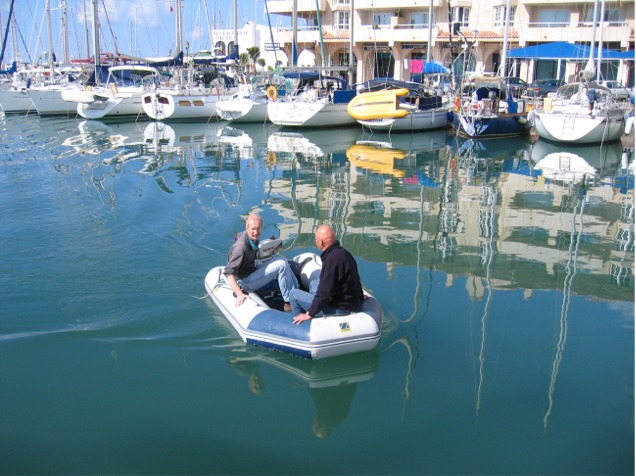 Ari ja Tuomo jolla-ajelulla Suvisussun vahauksen päätteeksi.Keskiviikkona 2.3. Ari tutustui espanjalaisen hammaslääkärin toimintaan, kun etuhampaasta irtosi paikka. Tällä kertaa, toisin kuin tulomatkalla Ranskassa, hammaslääkäri osasi englantia. Homma hoitui ihan hyvin ja huolellista työtä hän näytti tekevän. Samana päivänä Olavi Rosa-veneellänsä lähti matkaan länttä kohti, joten nyt täällä on yksi suomalainen vähemmän. Suomalaisista Tuomon kanssa olemme yhteydessä päivittäin ja muidenkin kanssa olemme silloin tällöin juoneet päiväkahvia milloin kenenkin luona, pari kertaa käyneet lounaalla tai istuneet iltaa yhdessä. Torstaisessa pohjoismaalaisten illassa olemme olleet viikoittain. Kerran Eilan ja Eskon luona päiväkahvilla ollessamme totesin, että paikallinen murukahvi on parempaa kuin käyttämäni espanjalainen jauhettu kahvi ja niinpä olenkin vaihtanut pannukahvin murukahviksi.