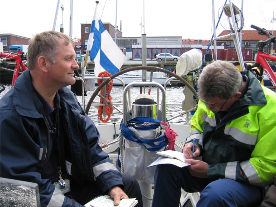 Juuri kun olin saanut Scheveningenissä edellisen jutun valmiiksi, niin sielläkin tuli (edellisen kerran Ranskassa Dunderquessa) tullin ja maahantuloviranomaisen edustaja käymään veneellä. Passeja ja veneen papereita he syynäsivät ja tullin virkailija kävi jopa vilkaisemassa venettä sisältä. Maahantuloviranomainen oli kovin kiinnostunut passeissamme olevista Marokon leimoista (keväällähän kävimme Fuengirolasta käsin päivämatkalla Marokossa). Hän kyseli tarkasti, millainen matka se oli ja millaisella aluksella menimme Gibraltarin salmen ylitse. Vähän ihmettelimme, miksi noin tarkkaa selvittelyä (olemmeko jollakin epäilyttävien listalla!). Eivät he kuitenkaan ainoastaan meillä käyneet, vaan olivat käyneet Cabanellakin heti heidän Scheveningeniin tulopäivänään.