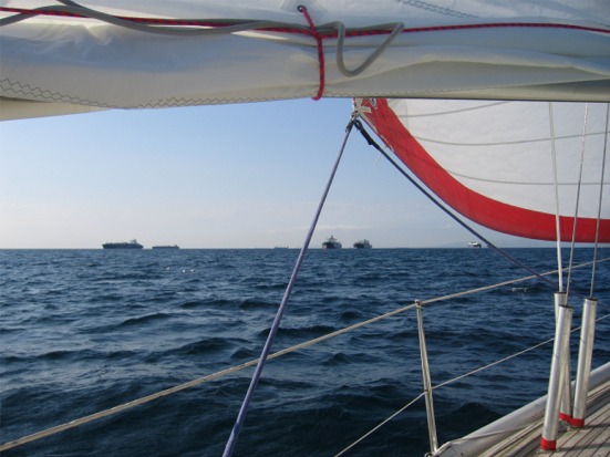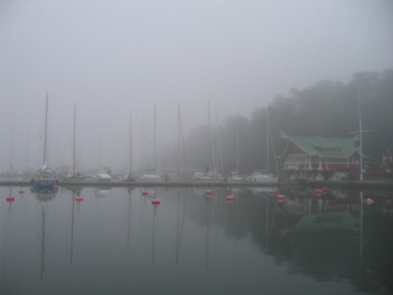 Olisiko sittenkin pitänyt pysyä satamassa. Tosin tämä laiva sivuutettiin jo hyvältä etäisyydeltä.Muutaman tunnin jälkeen sumu hälveni sisäsaaristossa ja oli komea auringonpaiste. Pari tuntia ennen Lappoa sumu iski uudelleen ja tosi sakeana. Samalla sää viileni niin, että kädet olivat satamaan päästessämme aivan kohmeessa (eipä tullut etsittyä käsineitä). Matkamme eteni samalla yhteistyöllä kuin aiemminkin ja totesimme tutkan todella hyväksi kapistukseksi. Lappoon saavuimme noin klo 21 ja matkaa oli takana 50 mailia. Päivän päätteeksi pääsimme vielä saunaan.