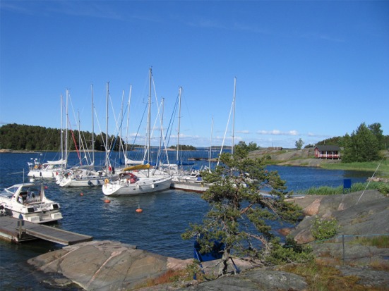 Tiistai oli kylmä päivä, vain noin 12-14 astetta ja illalla satoi vettä, kuten edellisenäkin iltana. Viime päivät olemme päässeet mukavasti purjeilla vaihtelevissa keleissä. Nyt tuuli oli puuskaista, mutta meille myötäistä niin, että etenimme pelkällä keulapurjeella Elisaareen Inkoon eteläpuolelle, päivämatka 33 mailia. Elisaari sijaitsee Bärösundin pohjoispäässä ja on Helsingin kaupungin ulkoilualue. Satama on kaislikon keskellä mutkittelevan kapean ja merkitsemättömän väylän päässä. Helppo sinne on kuitenkin mennä, kun tietää, että syvyyttä väylässä on ainakin 2,5 metriä ja lopulta satama avautuu todella suojaisessa sopukassa. Alueella on luonnonsuojelualue ja siellä kiertää viehättävä luontopolku mm. Suomen kolmanneksi suurimman tammimetsän keskellä.