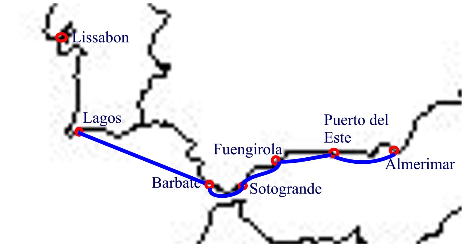 | Almerimarista lähdettyämme oli myrskyvaroitus ja suuntasimme Puerto del Esteen, jossa olimme myös seuraavan päivän. Seuraavassa satamassa Fuengirolassa viivyimmekin 2½ viikkoa, jonka aikana olimme lähes viikon telakalla potkurin ja vetolaitteen akselin vaihtoa varten. Sotogrande oli hyvä paikka odottaa sopivaa keliä Gibraltarin salmea varten. Barbatesta purjehdimme yön ylitse Portugalin puolelle Lagosiin, jossa viivyimme jälleen pidempään. |